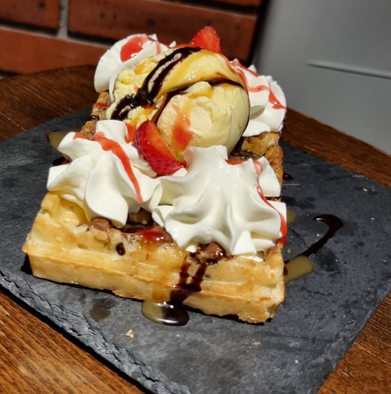 Gaufre chocolat Accompagner d'une glace vanille avec coulis et chantilly 6€50